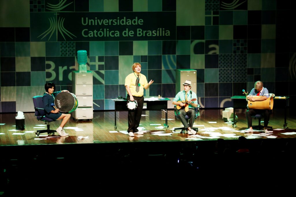 Grupo teatral proporcionou boas risadas e interação com os estudantes selecionados para a prova do Enade