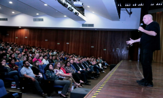 Durante palestra de acolhida aos calouros, o pesquisador tratou de assuntos sérios de forma inovadora e divertida