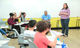 Os estudantes participantes do projeto puderam ouvir mais do PIBID por intermédio da coordenadora e de demais professores